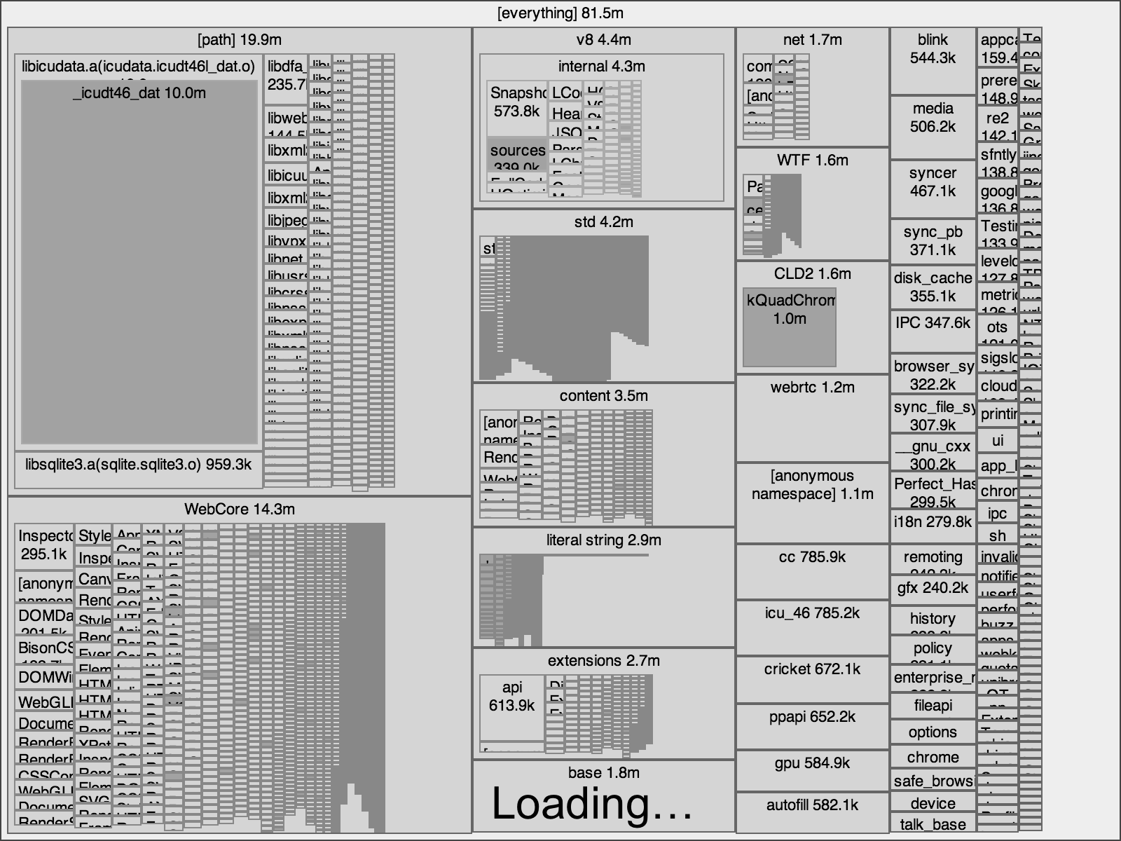 Here's a treemap of Chromium's main binary on OS X.